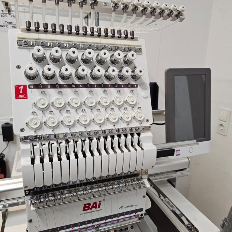 Mit modernster 15-Nadel-Sticktechnik veredeln wir Textilien zu einzigartigen Unikaten. Feinste Details, edle Garne und präzise Verarbeitung.